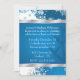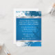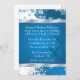 Bonito convite para festas de férias, com trabalho de arte gráfico de fundo azul e branco, com flocos de neve. As fitas de tom prateado delimitam a parte superior e inferior da área de texto azul. O texto branco é totalmente personalizável para atender às necessidades de sua festa de feriado.