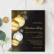 Um convite para um negócio, Festa de Natal da empresa. Fundo preto clássico. Decorado com bolhas de ouro e branco. Personalize e adicione os detalhes. 1 folha = 1 convite impresso de borda a borda.