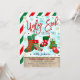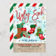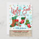 A tendência e o design exclusivo apresentam um fundo de cor aquática/madeira faux incrível e gráficos feios de meia. Use este convite de festas de Natal para seu feriado festivo de qualquer tipo.