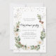 Farinha floral de inverno com uma combinação de florais de creme suave e folhagem de pinheiro acoplada a estrelas de folha de ouro falso e flocos de neve. Compare estas maravilhosas ilustrações com suas próprias informações para um incrível convite para festas de férias. Verifique em nossa loja se há mais opções de cor.