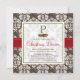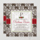 Adicione o seu monograma a estes convites de festas elegantes de janto de Natal, de framboesa, vermelho e castanho, que podem ser personalizados com o seu começo. Um design de fita vermelha com ponto de contraste envolve o cartão inteiro. Uma borda quadrada verde traça o centro desse convite sofisticado e na moda com um plano de fundo sutil e úmido. Trabalho de arte © Chrissy H. Estúdios, LLC. Todos os direitos reservados.