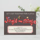 Um convite para festas de Natal com elementos de Natal, Candy Cane Jingle & Mingle em fundo castanho escuro. Perfeito para uma festa privada de Natal. Personalize o design com sua foto e o nome de sua família no cartão. Clique no botão PERSONALIZAR TI para personalizar fontes, mover texto e criar seu design de cartão com fotos de feriado único. Por favor, veja nossos outros cartões de feriado.