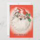 Fácil de personalizar o convite de festas de Natal. Ilustração Vintage design de Natal Feliz com um Papai Noel alegre. O velho Santo Nick tem uma barba branca esbranquiçada e está vestindo um chapéu de pelúcia tradicional decorado com folhas e bagas ocas. Seu rosto risonho é apresentado em um fundo vermelho brilhante. Uma sensação divertida de retro kitschy.