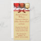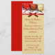 Bonito convite para festas de férias, feito em um estoque de cartas longo, com uma fotografia de ornamentos de bolas de Natal vermelhas e douradas no topo dos convites. Uma faixa vermelha com aparência de fita e arco como uma borda entre a parte superior e a área de texto colorida de ouro pálido. Personalize o texto para atender às suas necessidades.