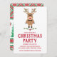 Adoráveis convites de festas de Natal de renas "nerds" com renas com arco e óculos pretos e texto em vermelho. Personalize com os detalhes do seu partido. A parte de trás do convite é uma design de natal vermelha, verde e dourada.