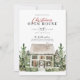 Aquarela aberta casa convite de festas de Natal com uma casa e árvores. Personalize seus convites de Natal com os detalhes de sua festa.