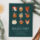 Cartão de convite de festas de Natal fantástico e festivo com ilustração desenhada à mão de gatos em fantasias de férias. Personalize este cartão adicionando informações de sua própria parte.