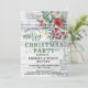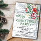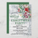 Um convite de festas de Natal de estilo rústico, com amoras, flores e folhagem sagradas, sobre uma madre de celeiro e verde sólido no verso do convite, que corresponde ao tipo na frente. Estilo único e antigo para um convite de festas de feriado. Consulte o cheio de produtos para este design em: https://www.zazzle.com/collections/rustic_christmas_barn_wood_and_holly_berries-119642245345600858