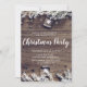 Madeira escura russa com flocos de neve e agulhas de pinheiro branco. Fonte decorativa elegante combinada com fonte serif para informações adicionais. O lado de trás é a madeira branca em dificuldades.