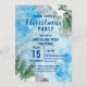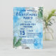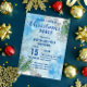 Design de convite de festas de Natal personalizado, com flocos de neve, galhos de pinheiros e estrelas em fundo de gelo azul. O texto é totalmente personalizável. Para alterá-la, use a opção Personalizar. Para obter mais alterações, como alterações na fonte, cor da fonte ou layout de texto, use a opção Editar design.