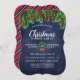 Convite de festas de Natal tradicional com ornamentos, pinheiro e xadrez - Design criado por Colorful Designs Inc. Copyright 2008-2023. Todo texto pode ser modificado.