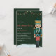 Celebre a temporada em estilo com este Convite de festas de Natal tradicional do Nutcracker. Apresentando um soldado festivo preguiçoso em um rico fundo verde, luzes de férias piscando, e elegante tipografia de Natal, este convite dá o tom perfeito para uma reunião de feriados quente e alegre. Personalize com seus próprios detalhes para festas familiares, comemorações de escritórios ou eventos festivos de Natal.