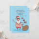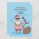 O perfeito convite de festas de Natal tropical! O fundo azul mostra Papais noeis em seu maiô e chapéu vestindo uma flor lei, óculos de sol e segurando seu saco.