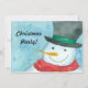 Um divertido convite de festas de Natal de boneco de neve festivo pintado em aquarela! Convite colorido para reunir amigos e família para o feriado!