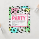 Um convite de festas genérico, multifacetado que caracteriza um fundo de néon do impressão do leopardo na parte dianteira e na parte traseira. Personalize o texto cor-de-rosa e preto na parte dianteira com detalhes de sua ocasião.