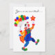 Um convite de festas brilhante e colorido com uma colagem de papel pintada a mão de um palhaço alegre com balões e girando uma estrela. O inverso é vazio para você adicionar detalhes. Consulte também presentes de palhaço, roupa e cartões de saudação correspondentes