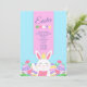 Aprecie seus convidados com este convite de festas de Páscoa bonitinho apresentando um coelho com um pintinho na cabeça cercado por flores e ovos festivos de Páscoa. <a href='https://www.freepik.com/free-vector/happy-easter-day-background-in-flat-style_1738563.htm'>Projetado por Freepik</a>). <br/>() A placa é fácil de personalizar com seu texto, fonte, cor da fonte e escolha de seis tipos de papel.<br/>() Não exatamente o que você está procurando? Todos os nossos produtos podem ser personalizados para atender às suas necessidades sem custo extra.<br/>() Basta entrar em contato conosco em askcottonlamb@gmail.com<br/>() Coordenando os produtos disponíveis: