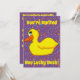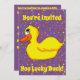 Um pato amarelo giro faz este convite de festas divertido. Personalizável para que você possa adicionar seu próprio texto e alterar a cor do plano de fundo. Excelente para sua próxima festa!