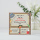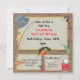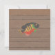 Equipamento de pesca em papel velho manchado com fundo texturizado de madeira. Um belo convite à pesca com vareta velha, bobina, chapéu de pesca, lures, peixe decorativo e uma lata de vermes. Peixe pintado desbotado nas costas, Excelente para uma piscicultura, festa de aposentadoria ou festa de aniversário de criança. Ilustração desenhada à mão por McBooboo.