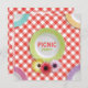Picnic/CHURRASCO/modelo/convite de festas exterior personalizável com placas coloridas e flores margaridas na mesa de gingham vermelha e branca com verificação. Personalize-o com seu próprio texto ou personalize-o ainda mais se precisar alterar o layout, o texto ou o tamanho do convite.