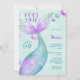 Convite de aniversário da piscina com tema de sereia. A design apresenta uma cauda das sereias e bolhas oceânicas em tons de aquarela de verde-hortelã e turquesa. Fácil de editar para qualquer idade. Perfeito para uma piscina de verão, sereia, princesa feminina e sob os temas do mar.