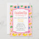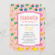 Planejando crianças que têm aniversários no verão? Um tema colorido de piscina é perfeito para se acalmar no calor e se divertir. Faça uma apresentação com convidados com este convite de aniversário rosa legal que tem elementos de piscina bonitos organizados em um padrão. Inclui itens como tronco verde, balde azul com um ícone de peixe, um flutuador, um flutuador de pato, uma arma de água de brinquedo, uma fantasia de natação rosa, uma máscara de ronco e uma bola grande. Perfeito para qualquer um que tenha uma piscina no quintal ou piscina inflável ou que tenha o evento em um parque aquático para a aniversariante. Personalize facilmente com os detalhes do seu partido.