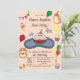 Faça um salto com a divertida Piscina de aniversário de Hamster de Verão! Este convite lúdico e colorido apresenta ilustrações adoráveis de um hamster de salto desfrutando de um cupcake em um flutuador de melancia, um hamster de pé com um cupcake, e outra limonada, rodeada de elementos festivos como balões, óculos de sol de abacaxi, cupcakes, cones de sorvete e salpicos de água. A parte de trás da placa apresenta um padrão bonito feito de cupcakes, salpicos de água e cones de sorvete — perfeito para amarrar o tema divertido e de verão. Adicione os detalhes da sua festa facilmente para personalizar, e prepare-se para lançar uma festa de aniversário super especial que seus filhos (e seus convidados) nunca esquecerão!