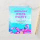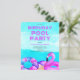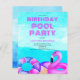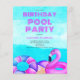 Convite de festas de piscina de aniversário de orçamento. Belo design de flamingo, rosa, de verão. Fácil de mudar o texto. O papel é mais fino que o papel de cartão.