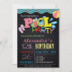 Convite de festas de Piscina de Verão para Meninas. Colocada sobre um fundo de quadro de chanfro com elementos coloridos de piscina de verão, ondas de água azul e bola de praia. Perfeito para uma Festa de aniversário lá fora com amigos mais próximos.
