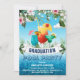 Divertido Convite de festas de Graduação de Verão, com água azul aqua, céus ensolarados, verde tropical botânico com flores exóticas, luzes de fadas de cordas, coquetéis de água para regar a boca e um modelo de celebração do formando de 2023 que pode ser facilmente personalizado.