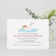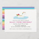 Este convite de festas bonito apresenta um unicórnio flutuando na água - perfeito para uma festa de piscina infantil com um tema arco-íris!