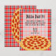Convite de festas de pizza festiva e divertida, excelente para qualquer ocasião como festa de aniversário, festas de escritório ou qualquer outra coisa. Recursos de convite ilustração de pizza maravilhosa com fundo de design de mesa e sua mensagem personalizada. Adicione o título de convidado de honra ou de festa, nome, foto, detalhes do evento e muito mais na frente e Personalize todo o texto para o seu partido!