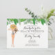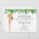 O convite para o fim de semana da festa de despedida de solteira tropical apresenta as meninas em maiô e flores tropicais. Detalhes do evento no verso do convite. Pode ser personalizado para qualquer evento.