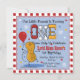 O amendoim-bebê bonito com um balão vermelho grande, um grande número UM em vermelho, branco e amarelo e branco e vermelho e branco com borda marcada tornam esses convites de festas primeiros aniversarios divertidos especiais. Texto personalizável para adicionar o nome do seu próprio bebê e as informações da festa. Também disponível em T-shirts e presentes. PinkInkArt original!