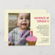 Um cupcake de chocolate com gelo cor-de-rosa, cortado com uma flor e uma vela numérica "1" é o principal foco deste adorável convite de primeiro aniversário. Adicione a foto do seu filho à esquerda e qualquer informação extra no verso. Disponível em cores e idades alternativas com produtos correspondentes.