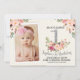 O convite para primeiros aniversarios florais desta doce menina, com uma grande palavra de brilho prateado e um arranjo floral de cor aquosa. O plano de fundo está branco com um padrão de bolinhas rosa esmaecido. A foto da sua menina aparece no lado esquerdo do convite dentro de um quadro branco. O mesmo design também está disponível sem uma fotografia. Para mais convites de aniversário de fotos de meninas, visite a loja. O convite para primeiros aniversarios florais desta rapariga está pronto para ser personalizado.