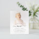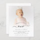 Um valor para o alternativo do ORÇAMENTO em tamanho menor de 4,5 x 5,6" de semirbrilho de 110 lbs, que é de espessura semelhante a um cartão postal (no entanto, não é adequado para uso como cartão postal). POR FAVOR, OBSERVE QUE HÁ UM convite por folha. Convite de festas do primeiro aniversario de Script de Foto Orçamentário. Um design minimalista totalmente personalizável para a primeira ou qualquer festa de aniversário etária, basta substituir a foto da amostra pelo seu próprio favorito e personalizar o texto conforme necessário