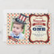 Celebrar o Dia da Independência com este belo convite de aniversário 4 de julho com elementos americanos bonitinhos com tipografia ocular. Basta adicionar os detalhes do seu evento neste modelo fácil de usar e adorar este cartão com a foto favorita do seu filho para torná-lo um convite generoso. Sacudir a placa para revelar um padrão de starburst vermelho e azul na parte traseira da placa.