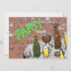 Junte seus amigos por algumas cervejas com este convite de festas único. Uma amostragem de diferentes toalhas em uma variedade de óculos e garrafas coloridas sentam-se sobre uma mesa entre um confete colorido na frente de uma parede de tijolos na imagem de aquarela na frente da placa. "Festa" na parede em neon verde adiciona cor festiva. O texto personalizável no verso pode ser facilmente alterado de acordo com suas próprias necessidades. Da minha imagem original criada digitalmente.