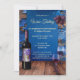 Um convite de festas de provando de vinho cônico rústico, com garrafa de vinho, uvas e taças de vinho em azul com calha. Bonita para um aniversário ou outra celebração ou evento de provando de vinho.