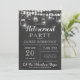 Convite de festas de aposentadoria russo com luzes de cordas e uma combinação de script e tipografia de rosto aberto em um fundo de quadro. Perfeito para a comemoração da aposentadoria masculina ou feminina. Para mais personalização, clique no botão "Personalizar" e use nossa ferramenta design simples para modificar este modelo.
