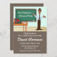 Este design único é perfeito para a festa de aposentadoria de um professor. Apresentando um professor afro-americano ao lado da mesa e do quadro.
