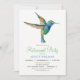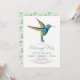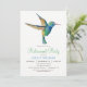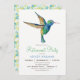 Convite de festas de aposentadoria de beija-flor. O convite apresenta um Hummingbird verde e azul e um padrão floral.