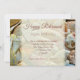 Convite de festas de aposentadoria da mulher com conchas bonito. Um painel transparente contém o texto rosa avermelhado. Modelos de texto simples têm o tipo de celebração no topo, "Boas Retiradas" com o nome da honraria impresso abaixo. O texto da parte restante é adicionado no formulário de parágrafo para usar o texto que você quiser. A imagem da fotografia da concha cobrir a parte de trás das cartas. Atualize o papel para tornar os convites ainda mais especiais.