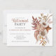 Convite de festas de reforma floral de cor rústica de Boho, com matizes ricos em castanho-ferrugem e natas com folhagem e gramíneas e folhas secas para uma vibração à terra.