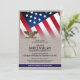 A águia ouro clássica e o design de bandeira dos EUA para estes convites de festas de aposentadoria militar que você pode personalizar para sua próxima celebração.