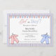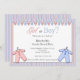 Garota ou Garoto? Descubra na festa de revelação de gênero e vista rosa ou azul para representar seu palpite! Uma reviravolta divertida no chá de fraldas tradicional. O gênero do bebê será revelado nesta celebração! design cor-de-rosa e azul, com pijama de bebê e uma borda listrada.