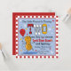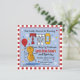 O amendoim-bebê bonito com um balão vermelho grande, um grande número dois em vermelho, branco e amarelo e branco e vermelho e branco cheios de borda tornam esses convites de festas segundos aniversários divertidos especiais. Texto personalizável para adicionar o nome do seu próprio filho e as informações do participante. Também disponível em T-shirts e presentes. PinkInkArt original!