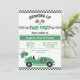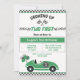 Um convite de carro de corrida para segundo aniversário "Crescendo Dois Rápidos" em verde e cinza. Personalize o convite com o nome, a data, a hora e o local da parte do seu filho.