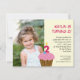 Um cupcake de chocolate com gelo cor-de-rosa, com uma flor e uma vela numérica "2", é o principal foco deste adorável segundo convite de aniversário. Adicione a foto do seu filho à esquerda e qualquer informação extra no verso. Disponível em cores e idades alternativas com produtos correspondentes.